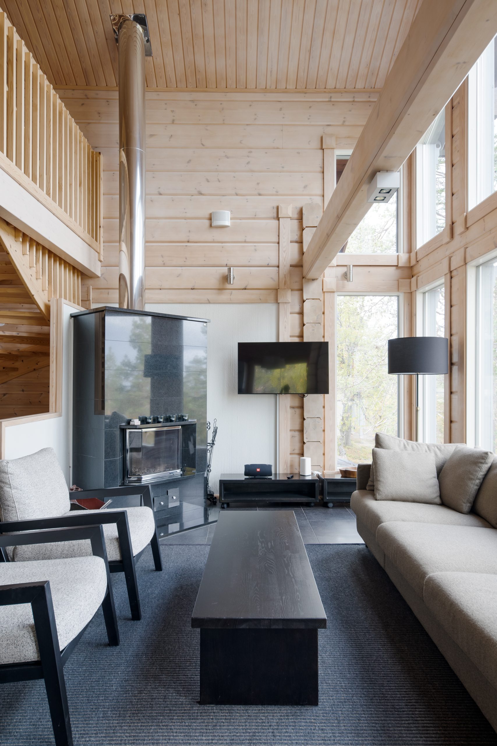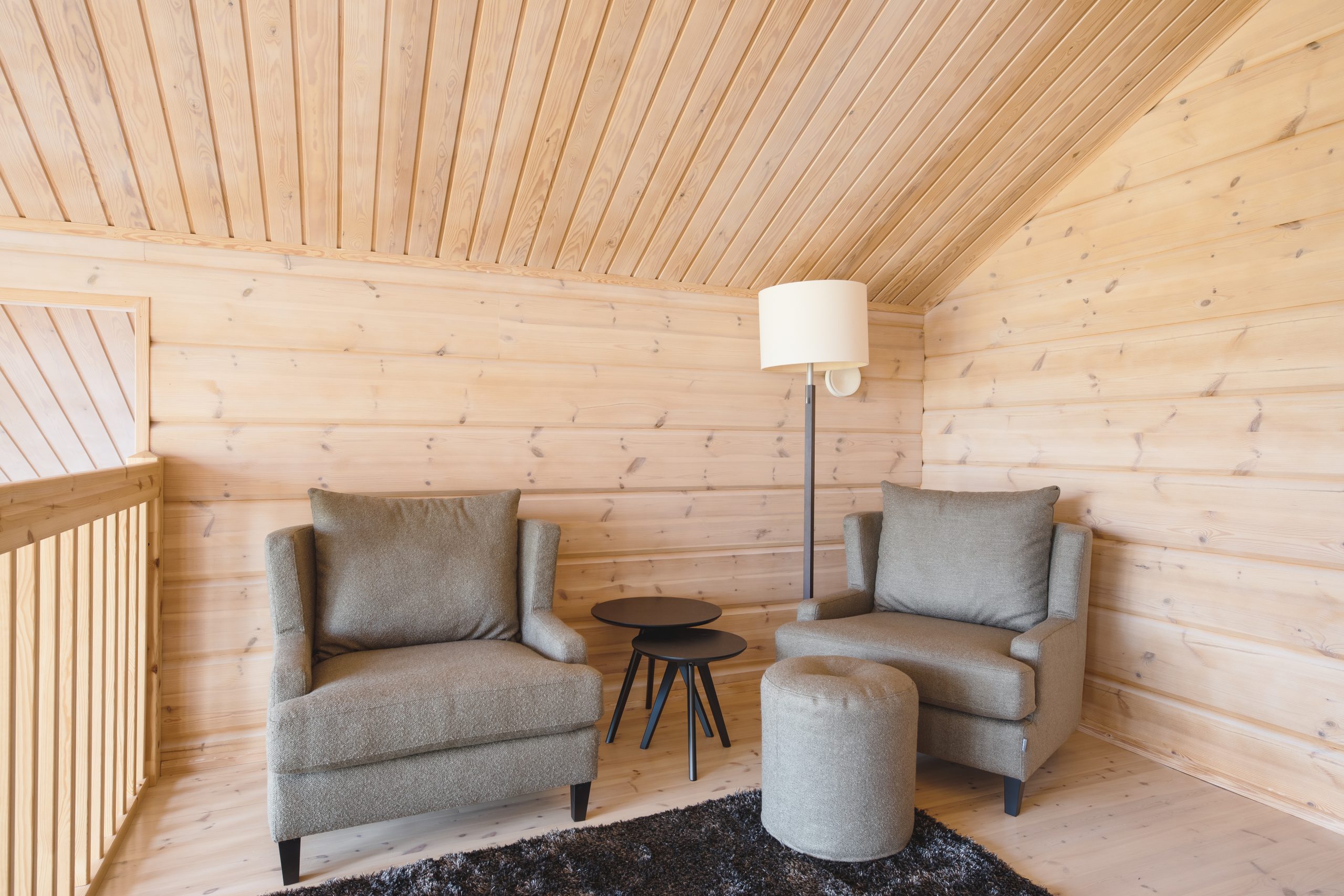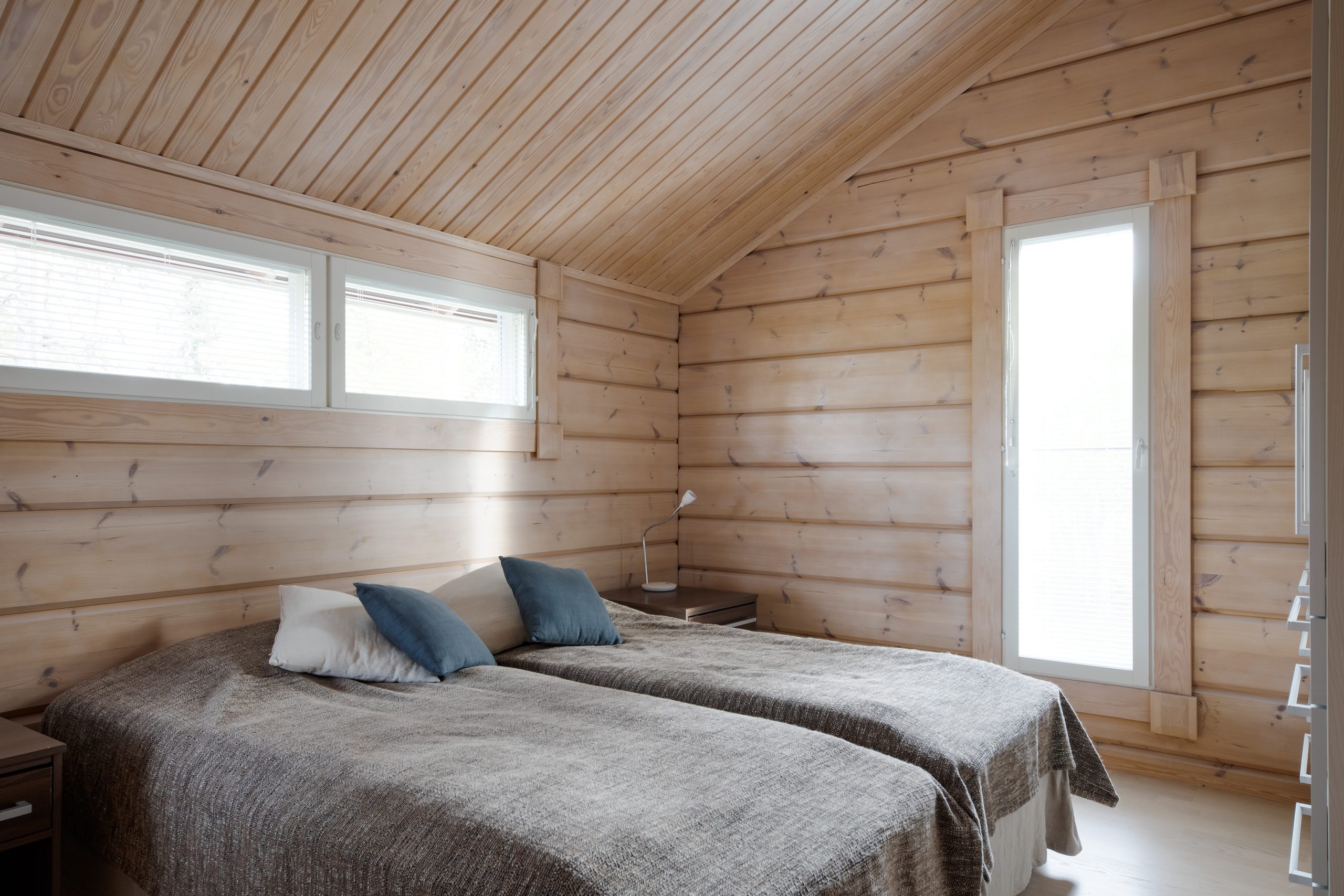 Yläkerrassa on aula, yksi makuuhuone, pukeutumishuone sekä wc ja suihku. Alakerrassa on yksi makuuhuone, wc/suihku, kokoustilat, kodinhoitohuone sekä suksivarasto/huoltotilat.
